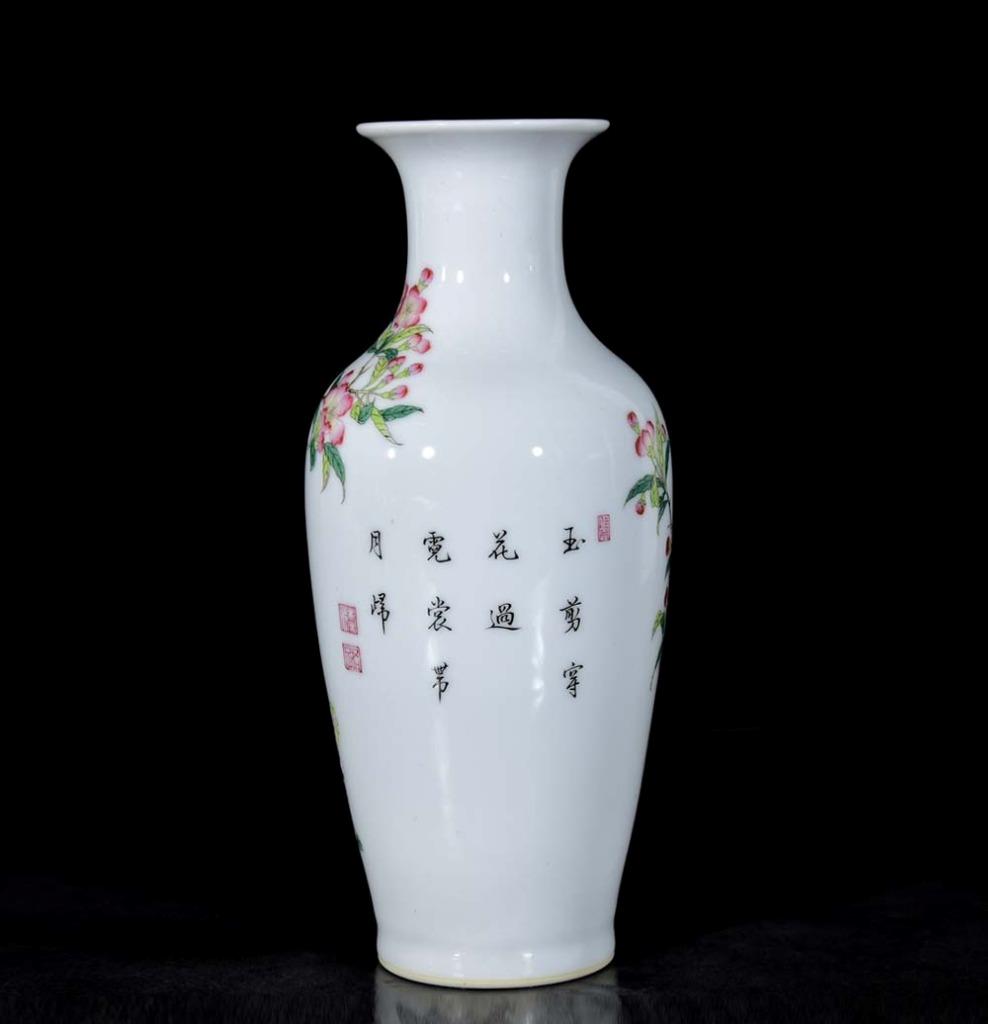 Description - Chinese porcelain vase, decorated with flower, Qianlong mark on side.